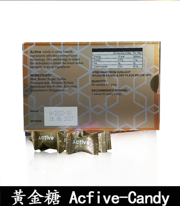黃金糖 Acfive-Candy 也叫汗馬糖是專為改善男性性功能設計的高品質糖果,來自馬來西亞的頂級配方,經過嚴格的科學研究和臨床試驗,證明其無毒無副作用。這款糖果三天含化一顆,即可有效改善性功能障礙,助您恢復自信,提升生活品質。