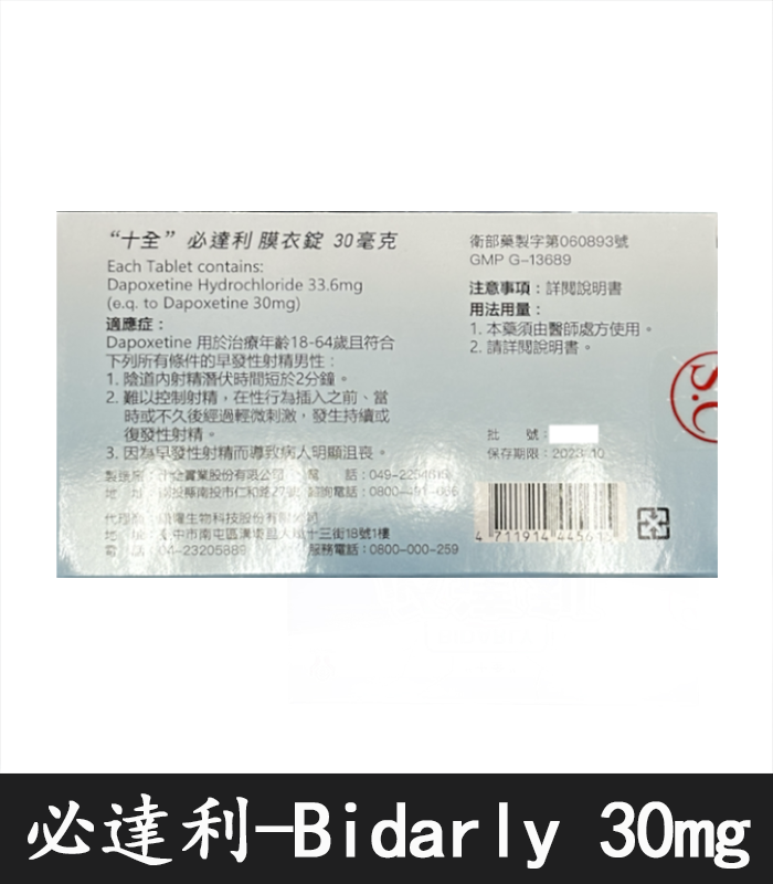 必達利 Bidarly 30mg|十全製藥 必利勁學名藥/1盒10顆