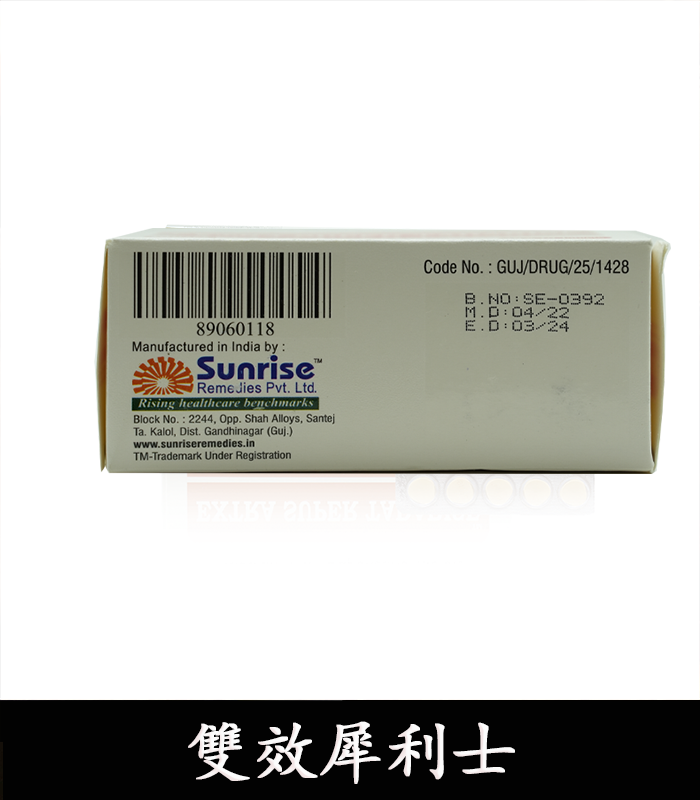 生產廠家:Sunrise Remedies Pvt. Ltd.(印度桑瑞製藥公司)