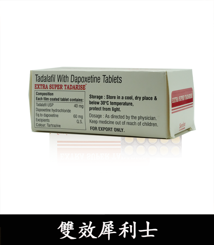 在現代男性的壓力與生活節奏下,勃起功能障礙(ED)與早洩(PE)已成為常見但敏感的健康議題。Super Tadarise 雙效犀利士是一款來自印度 Sunrise 製藥的雙效口服藥品,結合兩種臨床證實有效的成分:他達拉非(Tadalafil)40mg達泊西汀(Dapoxetine)60mg,一次解決「硬不起來」與「撐不夠久」的兩大困擾。它不僅能增強陰莖充血、促進勃起,還能延緩射精、提升性愛掌控力,藥效最長可維持 36 小時以上。無論是偶發性功能不佳,或是長期受到雙重困擾困擾的男性,雙效犀利士都能提供強效、安全且高效的幫助。