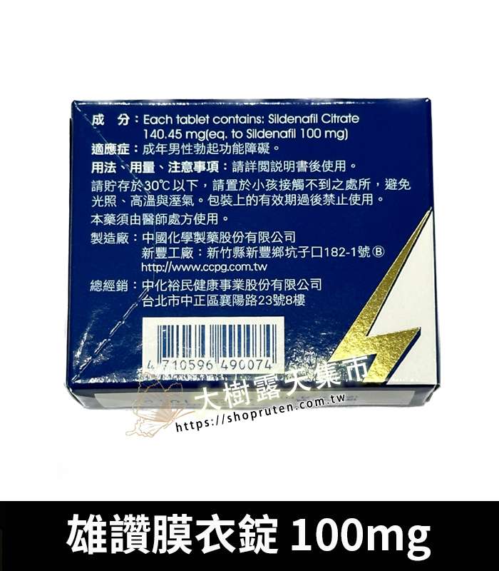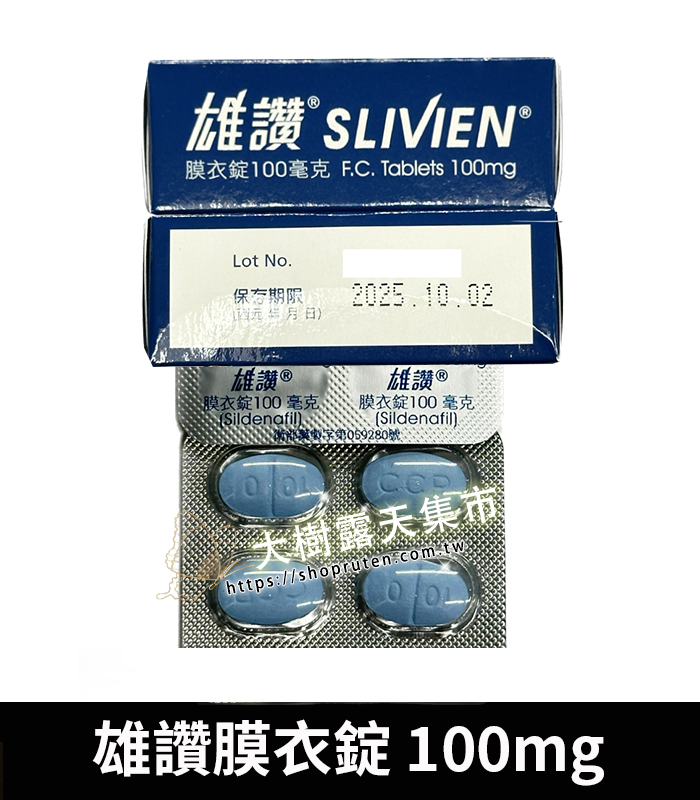 - 西地那非(Sildenafil)100mg:與原廠威而鋼相同成分,為PDE5抑制劑,可促進陰莖血流充血。