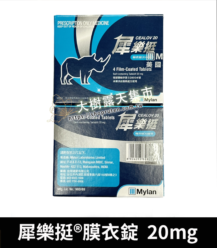 犀樂挺膜衣錠 Cealov 20mg | 犀利士學名藥/1盒4顆