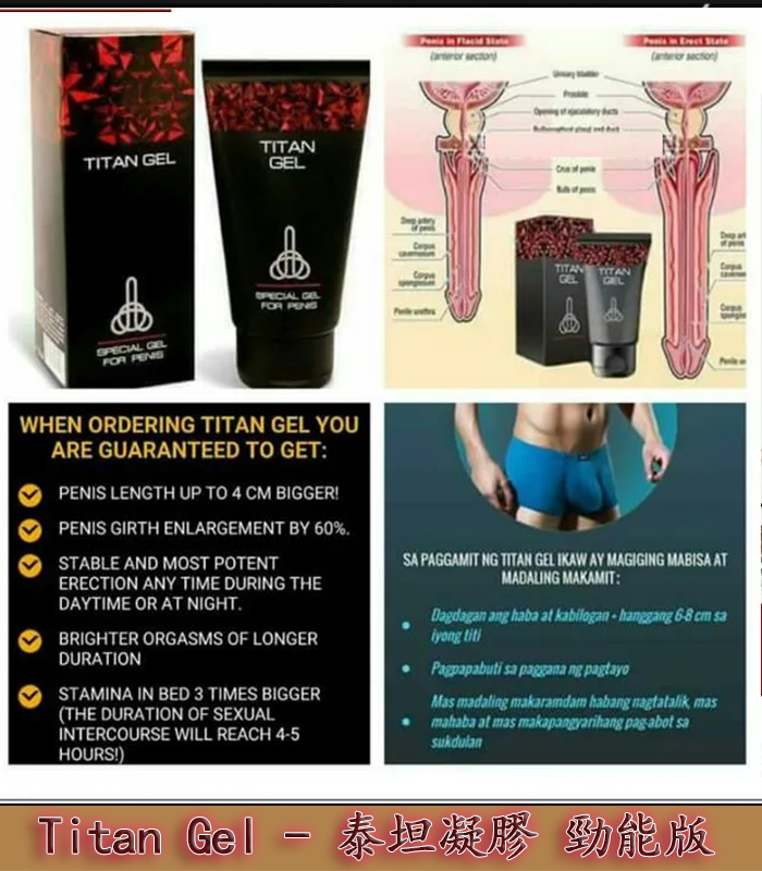 Titan Gel 是一款針對男性設計的天然增大膏,旨在有效提升陰莖的尺寸與性功能。這款凝膠採用了獨特的草本成分配方,經過臨床實驗證實,能夠顯著增長陰莖長度和周長,並且增強性生活的質量與持久力。Titan Gel 是您實現自信提升的理想選擇。
