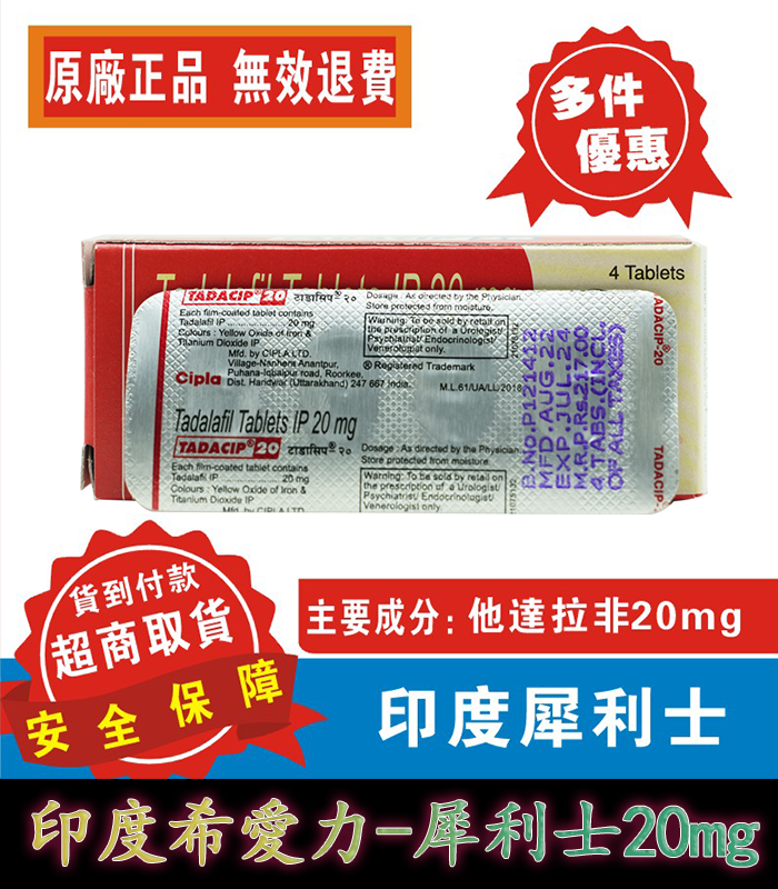 印度犀利士tadacip20,壹片含有20毫克的他達拉非。印度犀利士效果好,起效快,幫助勃起,增強硬度,功效在30分鐘內開始,並持續約48小時以上。