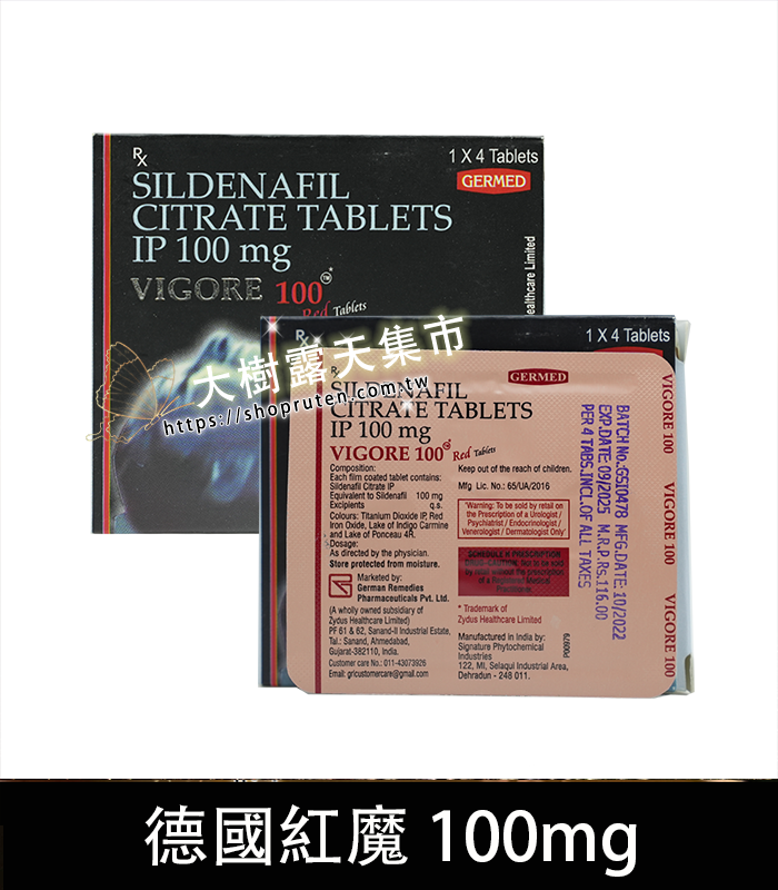 德國紅魔 VIGORA 100mg 威而鋼學藥名 助勃/1盒4粒