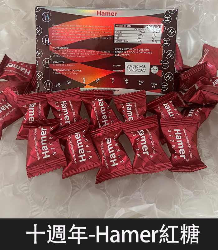 【Hamer 汗馬糖 十週年紅糖】紀念強效升級版/1盒36顆