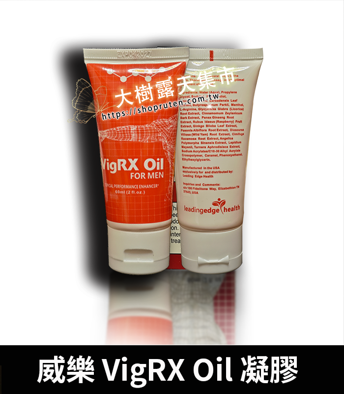 威樂VigRX-Oil 外用按摩膏威樂軟膏,讓強大的電流重新出現在妳的性生活!VigRX-Oil 草本萃取物,塗抹後可增加您的陰莖血流量,讓勃起更強大,更有力,全面補充男性機能。塗抹此全天然的男性陰莖增加補充品之後,您會看到VigRX-Oil 以前所未有的方式滿足您的伴侶!軟膏搭配口服膠囊效果更佳!