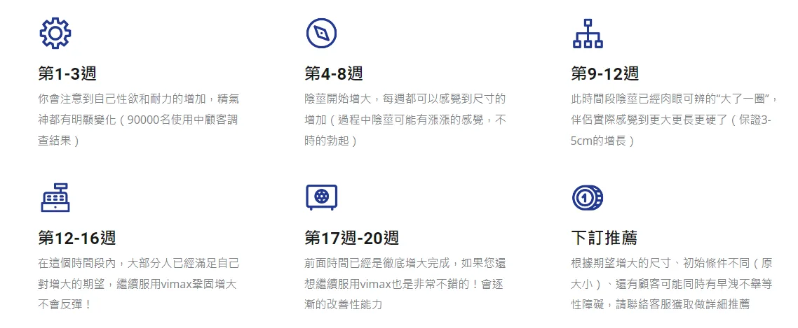 • 第17週-20週 前面時間已經是徹底增大完成,如果您還想繼續服用vimax也是非常不錯的!會逐漸的改善性能力